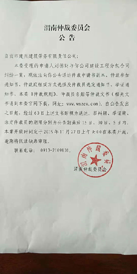 劉德財與自貢市建興建筑勞務(wù)有限責(zé)任公司一案公告